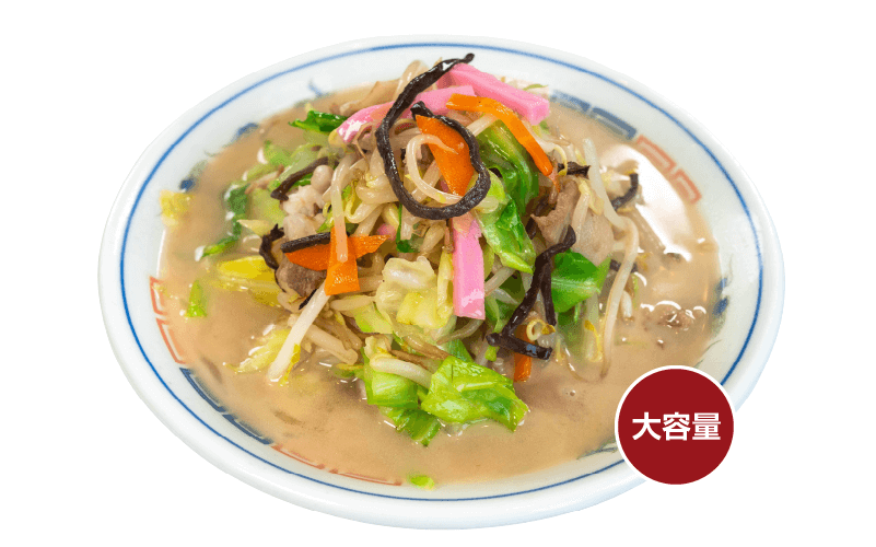 自家製ちゃんぽん麺 / チャンポンスープ / 豚肉 / イカ / きくらげ・赤平 / ラード / 醤油